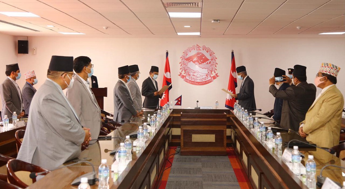 प्रधानमन्त्रीबाट सपथ ग्रहण गरेपछि उपाध्यक्ष पौडेलले सदस्यहरुलाई सपथ ग्रहण गराएका छन् । गत मंगलबार बसेको मन्त्रिपरिषद बैठकले राष्ट्रिय योजना आयोगको उपाध्यक्षमा पौडेललाई र सदस्यहरुमा रामकुमार फुयाँल र दिलबहादुर गुरुङलाई नियुक्त गरेको थियो ।