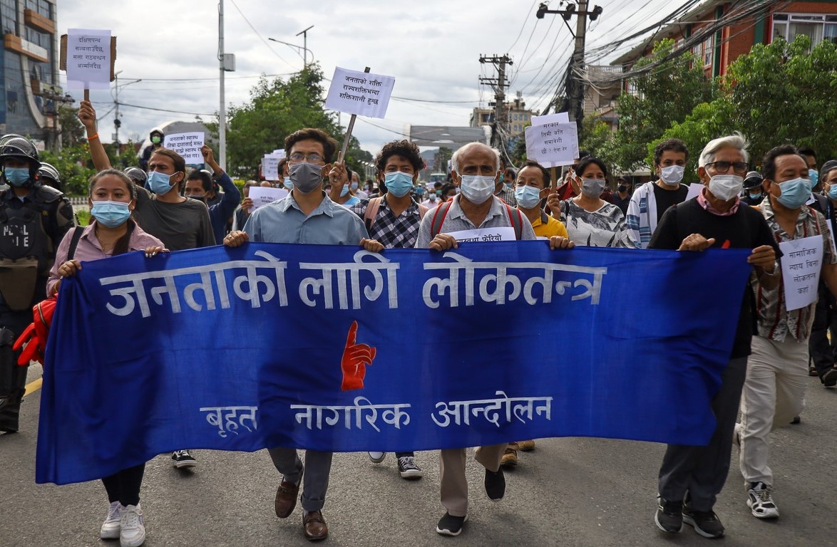 श्रावण १६, काठमाडौं । बृहत नागरिक आन्दोलनले शनिबार काठमाडौंमा प्रदर्शन गरेको छ ।वीपी कोइराला स्वास्थ्य विज्ञान प्रतिष्ठानमा देखिएको बेथिती अन्त्यको माग गर्दै नागरिकहरु माइतीघरदेखि नयाँ वानेश्वरसम्म प्रदर्शन गरेका हुन् ।