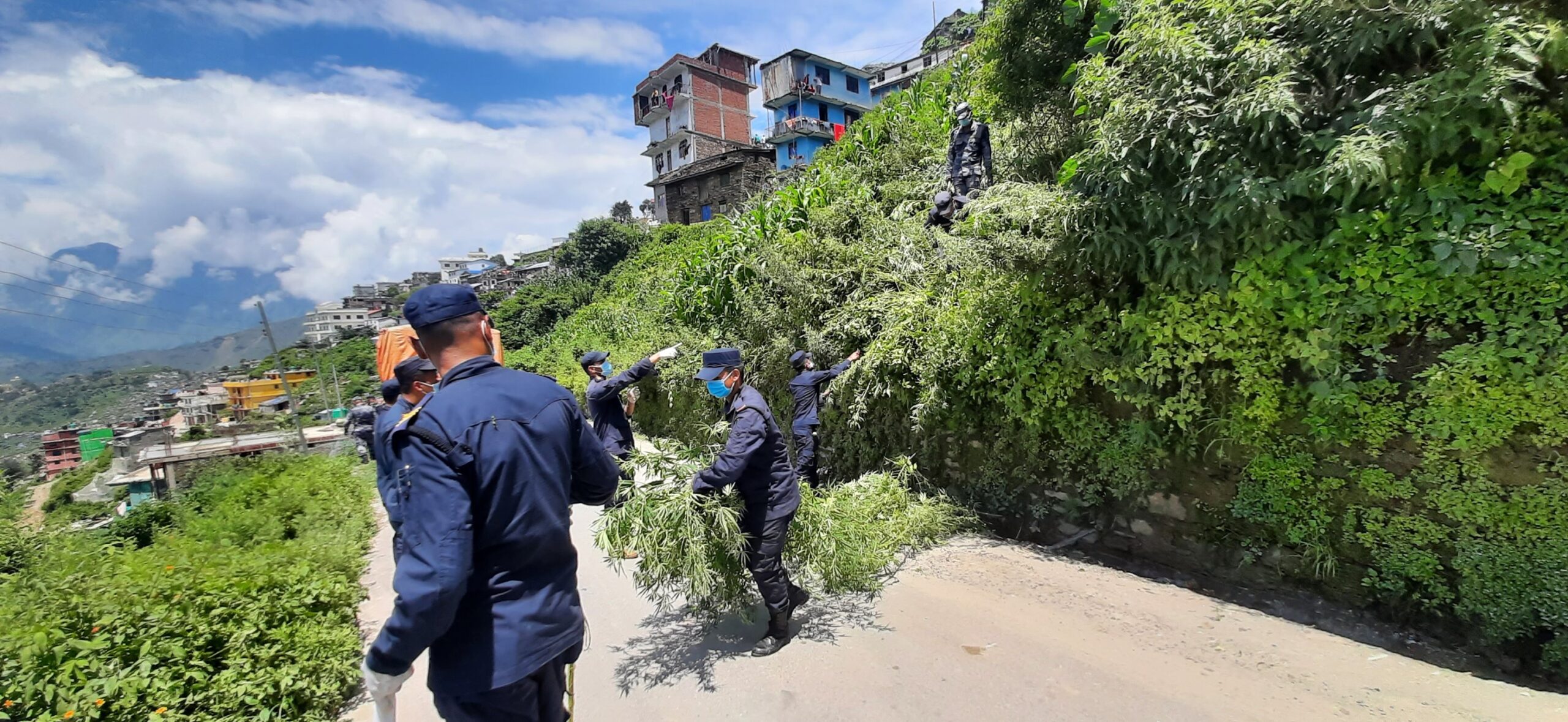 ललित बिष्ट श्रावण २४,मान्म। समुदाय प्रहरी साझेदारी कार्यक्रम अन्तर्गत जिल्लाको सदरमुकामा मान्म स्थित खाँडाचक्र नगरपालिकाको बजार वरीपरी प्राकृतिक रुपमा उम्रीएको गाँजाको बोट नष्ट गरिएको छ। मान्म बजारको जिरोपईन्ट,बिचबजार, पुरानो बसपार्क लगाएतका ठाउँकको गाँजा नष्ट गरिएको हो ।