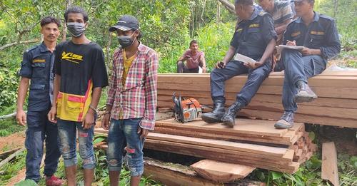 कैलाली- जिल्लाको मोहन्याल गाउापालिकामा काठ चिरान गरिरहेको अवस्थामा २ जना पक्राउ परेका छन्।