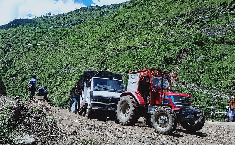 असोज २,जुम्ला। कर्णाली राजमार्ग अन्तर्गतको सिम्लेखोलामा हिलोका कारण गाडी जाम हुँदा यात्रुले निक्कै सास्ती भाेग्नु परेकाे छ ।सिम्लेखोलामा पुल निर्माण भए पनि कालोपत्रे नभएपछि हिलाे जमेका कारण गाडी पास हुन घण्टाैँ लाग्ने गरेकाे छ । लगातार हप्ता दिनदेखि गाडी जाम भएपछि यात्रु अलपत्र परेका छन्।