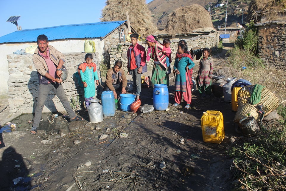 ‘यहाँका सबै टोलका नागरिकले पानी भर्ने ठाउँ लार्फा गाउँ हो, म बिहानैदेखि पानी लिन आएकाे हुँ, पालोमा बस्नुपर्छ, पालाे मिचिएमा झगडा हुन्छ । वडाध्यक्षले केही गरेनन्, हामीलाई पानी भएको भए केही चाहिँदैन थियो’, उहाँले सुनाउनुभयाे ।
