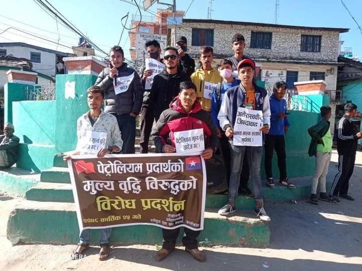मान्म २५,कार्तिक। नेकपा एमालेको भ्रातृ संगठन अनेरास्ववियु र राष्ट्रीय युवासंघ नेपालले खाना पठाउने ग्यास र पेट्रोलियम पदार्थमा गरेको मूल्यबृद्धि तत्काल फिर्ता लिन माग गरेको छ ।