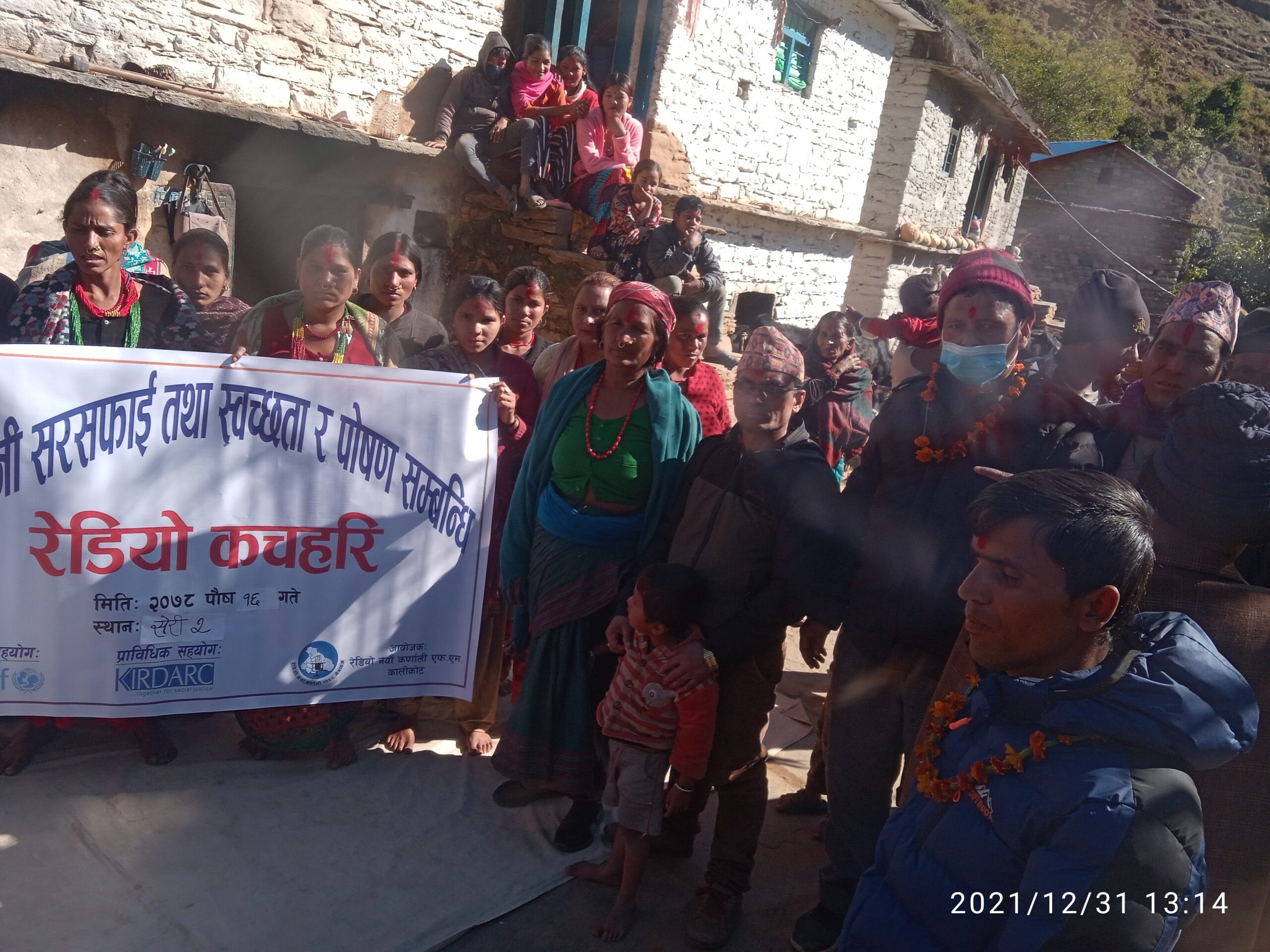 १६ पुस, कालीकोट । खानेपानी सरसफाई तथा स्वच्छता र पोषण सम्बन्धि रेडियो कचहरी सम्पन्न भएको छ । कालीकोटको खाँडाचक्र नगरपालिकाको वडानं.२ को सेरी गाउँमा शुक्रवार यूनिसेफ नेपालको आर्थिक सहयोग ताथा किर्डाक नेपालको प्रविधिब सहयोग र रेडियो नयाँ कर्णालीको एफ.एम कालीकोटको आयोजनामा कार्यक्रम सम्पन्न भएको हो ।