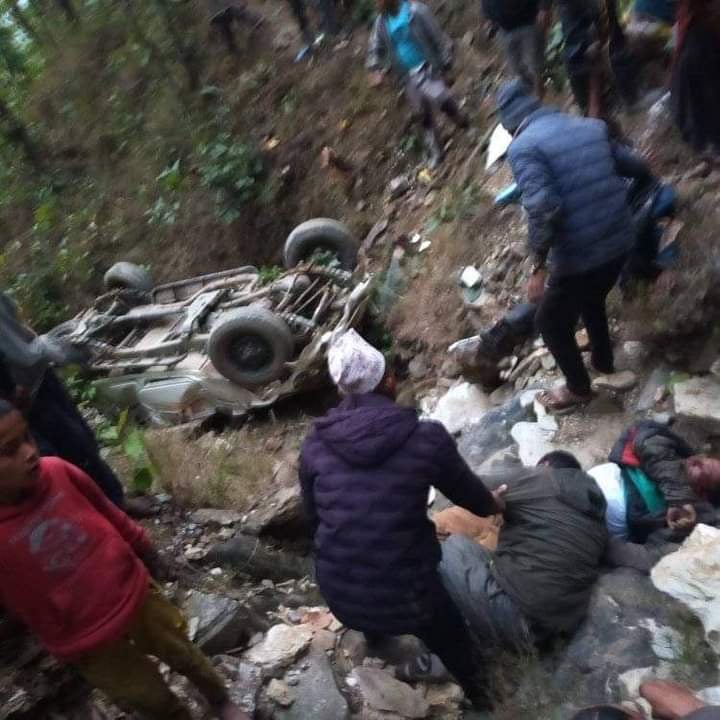 ३ फाल्गुन, दैलेख । दैलेखकाे महाबु गाउँपालिका वर्ड नं-४ फागुमा जिप दुर्घटनाम हुदा एक जनाकाे मृत्युु भएकाे छ,भने ६ जना घाइते भएका छन् ।मङ्गलबार सदरमुकाम दैलेखदेखि महाबु गाउँपालिकाकाे कासिकाध तर्फ जाँदै गरेकाे बागमती प्रदेश ०१.०२६ च ५२६६ नं. बोलेरो जिप दुर्घटना हुँदा घटना स्थलमै एक जनाको मृत्यु भएको गैडावाज प्रहरी चौकिका हवल्दार दिपेन्द्र सिंहले जानकारी दिए। मृत्यु हुनेमा महाबु गाउँपालिका वडा नम्बर-५ गडिगाउ घर भई साेहि ठाउँमा रहेकाे शिव आधारभुत बिद्यालयका प्रध्यानाध्यापक राम बहादुर हमाल रहेकाे प्रहरिले जनाएकाे छ । दुर्घटनामा परि गम्भीर घाइते भएकालाई थप ६ जना लाई उपचारको लगि जिल्ला अस्पताल दैलेखमा पठाईएको छ । घटनाबारे थप बिवरण आउन बाकि छ ।